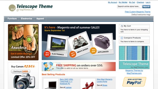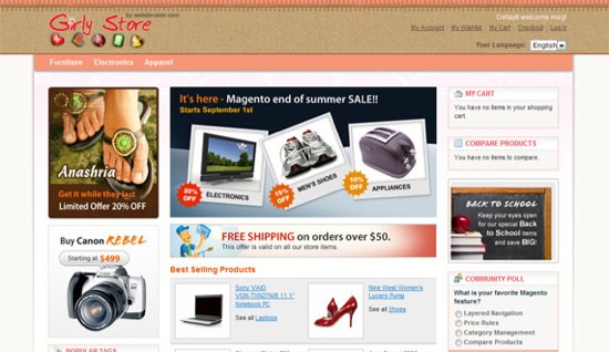 Recently we released the first advanced as well as free shopping cart (e-commerce) blogger template. If are planning to start an e-commerce site with no investment, have a look at our shopping cart blogger template. The templates listed here are designed for WordPress, Magneto and osCommerce.